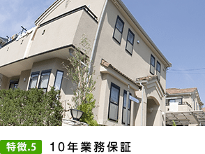 発行から10年間の業務保証をつけています。業務保証とは、建物の診断をした箇所を原因としたトラブルが発生した場合、10年間は無料でご相談に応じることにしています。この保証を利用してご相談されたお客様は、わずかに2名様だけです。それだけ問題のない住宅に仕上がっているということでもあります。
