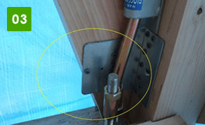 - 耐震金物を止めているビスの位置がギリギリすぎています。