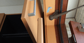 防水テープはまずサッシの縦枠に沿って貼ります。その後上の横枠に沿って貼りますが、このときに先貼りした縦のテープのてっぺんは横のテープの中に隠れるように貼らなければなりません。横のテープを突き抜けて上に出てしまうと、その交点から雨水が浸入するからです。
